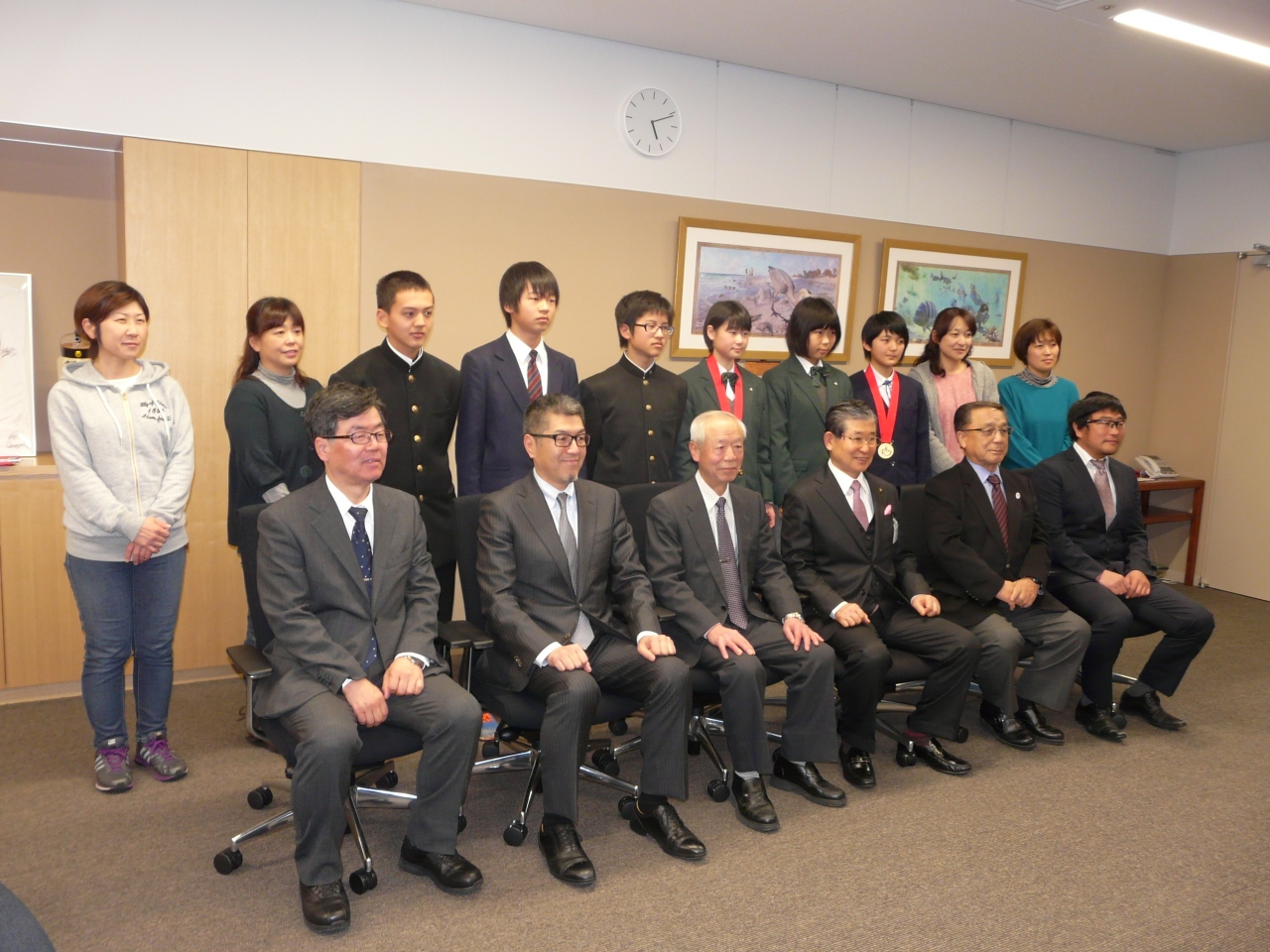 第36回全国中学校スケート大会(1月30日(土)~2月2日(火))が、エムウェーブ(スピード)・ビッグハット(フィギュア)で開催され、好成績を収められた選手並びに市スケート協会の皆さんが報告に見えました。