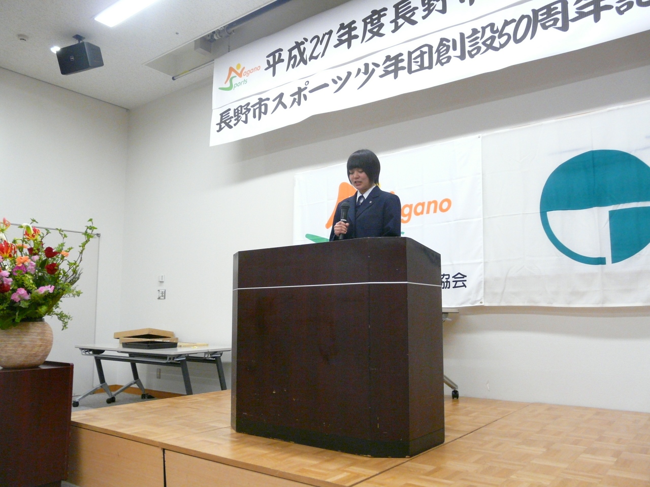また、本年度は、長野市スポーツ少年団の創設50周年に当たることから記念事業の一つとして、少年団活動に功労のあった指導者に対する功労指導者表彰並びに積極的な団活動においてリーダーシップを発揮している団員に対する優秀団員表彰並びに継続して活発に活動している単位スポーツ少年団に対する優秀団表彰の記念表彰式を併せて行いました。