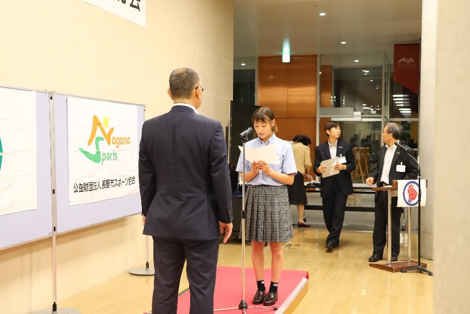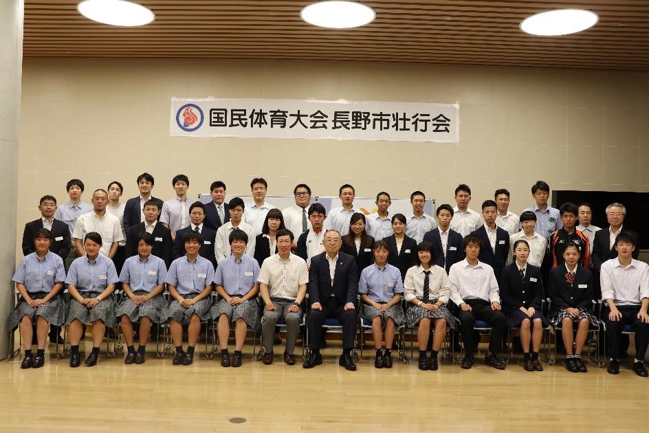 9月20日(木)、長野市役所第一庁舎1F市民交流スペースにおいて、国民体育大会に出場する監督・選手の長野市壮行会を開催しました。