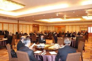 当日は、出場選手未発表のため、各競技団体代表者の皆様にご出席いただき、加藤会長(長野市長)から激励のことばと激励金の目録授与が行われました。